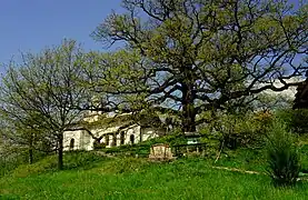 In this area there are traces of the Thracian and Roman periods, which testify to rich material and spiritual culture. The remains of a rustic villa, as well as church buildings from the Middle Ages, have also been found. They were all probably part of an old settlement, called Gramade. Coins, foundations of buildings, labour tools and other objects have been unearthed that confirmed the monastery's existence on the site. The monastery was founded during the Second Bulgarian Empire and was among the most renown monasteries in the Balkan peninsula during 12-14th centuries. After the fall of Bulgaria under the Ottoman rule in the late 14th century, the monastery was destroyed several times by the Ottomans. The foundations were rediscovered in 1938. In 1947 it was restored and is now periodically active. The complex consists of a spacious one-nave, one-apse church with an emporium (balcony), a triple narthex with a bell tower above it and a residential building. In the courtyard there is a huge centuries-old oak tree, estimated to be over 600 years old.[1][2][3][4]