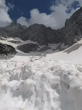 Triglav glacieret is the second remaining glacier in Slovenia at the elevation of 2500 m.