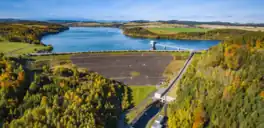 Slezská Harta Reservoir (Czech: Vodní nádrž Slezská Harta) is an artificial reservoir and a rock-fill embankment dam in the Nízký Jeseník mountain range, Moravian-Silesian Region, Czech Republic. The dam is built on the upper course of the Moravice River. With the surface area of 8.7 km2, it is one of the largest reservoirs in the country. It was constructed in 1987–1997.