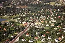 The Smestad ponds are man made ponds which were dug out during the late 1800s by Carl Smestad to provide the bourgeoisie of Oslo with ice for refrigeration throughout much of the year.[6] This was a lucrative trade with notable customers such as the Grand Hotel on Karl Johans Gate, in particular due to the ponds central location. Ice halls were built in the 1880s for storage and export.[7]