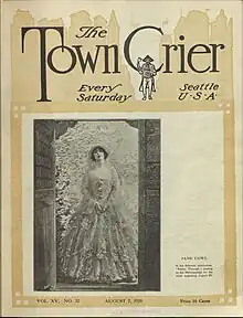 ![]() This 1920 cover of Seattle magazine The Town Crier shows Jane Cowl in a stage production of Smilin' Through. | |