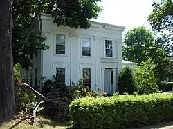 It is a two-story, three-bay-wide, timber-framed, Greek Revival style residence built in about 1835. The entrance features a carved architrave supported by Ionic columns.[2] As described in state records, "The west facades of the main block and wing are finished with flush weatherboards; each facade is divided and framed by elaborately fluted Ionic pilasters. The remainder is clapboarded. The entire structure is painted white. The main entrance is reached by a three-step stair of dressed stone. One brick chimney with rebuilt top is located in the main block."
