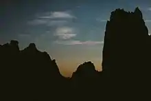The Smith Rock Groups cover a large swath of the climbing park stretching from Asterisk Pass to the southern border of the park. Generally, these can be areas to get away from the crowds and the sun.[49] The Smith Rock Group has a lot of varied climbing but mostly sport with a couple of options for multi-pitch. Some of the more popular routes are Sky Ridge (5.8 trad, 3 pitches), Sunset Slab (5.9 sport), White Satin (5.9 trad, 3 pitches),[50] Wherever I May Roam (5.9 sport, 5 pitches),[51] Phoenix (5.10a sport), Kunza Korner (5.10c sport), American Nirvana (5.11c sport), and Blackened (5.11c/d).[52]