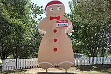 On December 2, 2006, at the city's 16th Annual Festival of Lights, Smithville broke the Guinness World Record for the world's largest gingerbread man.[13] The record breaking "man" measured over 20 feet (6.1 m) long and weighed 1,308.5 lb (593.5 kilograms). Some of the ingredients used were 750 pounds of flour, 49 gallons of molasses and 72 dozen eggs. The pan used in the baking now stands as a monument at the James H. Long Railroad Park in Smithville. The record has since been broken by a Norwegian IKEA display.[14]