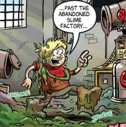 Smudge was a little boy who described himself as "the scruffiest boy in town and proud of it", relishing any opportunity to get filthy. His main rival was the snooty Percival Primm. Other characters in the strip included Smudge's Mum and over the years he had two different pets firstly a mouse and an animal of a never revealed although bipedal species (this is something of a running joke in Smudge strips[2]) completely covered in mud and called Spludge.
