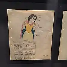 Animators' initial sketches for Snow White's character, some of which bore a resemblance to Betty Boop, did not meet Walt Disney's expectations, as they were too cartoonish.[37][38] Hamilton Luske, whom Disney had selected as the supervising animator for Snow White's character, was tasked with the challenge of making Snow White more believably human and realistic than any of the Disney studio's previous animated characters. This was a challenge Luske and co-animator Les Clark had previously been asked to explore while developing the character of Persephone for the Silly Symphonies animated short The Goddess of Spring. Of that project, Les Clark later remarked, "I'm sure Walt was thinking ahead to Snow White." Though the Persephone character ended up appearing somewhat lifeless and devoid of personality, that experiment in imitating realistic human movement and anatomy was continued and its lessons were applied in the development of Snow White's animation techniques.[39] Snow White and the Queen were refined by Grim Natwick and Norm Ferguson, who would often override Walt Disney's instructions as well as Charlie Thorson.[40][41]