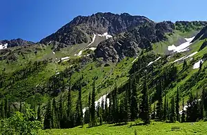 The Alpine Lakes Wilderness features some of the most rugged topography in the Cascade Range with craggy peaks and ridges, deep glacial valleys, and granite walls spotted with over 700 mountain lakes.[5] Geological events occurring many years ago created the diverse topography and drastic elevation changes over the Cascade Range leading to the various climate differences.