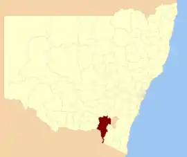 The Snowy Valleys Council is a local government area located in the South West Slopes region of New South Wales, Australia. This area was formed in 2016 from the merger of the Tumut Shire with the neighbouring Tumbarumba Shire.[3]