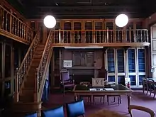 The Hall, which is Category A listed,[2] is a two-storey structure containing a large reception area, committee room and office, and a large Library with gallery and purpose-built timber bookcases. The architect of the Hall was James Matthews, who also designed the arched balustrade running the length of Union Terrace Gardens and from 1883 to 1886 was Lord Provost of Aberdeen.[2] Room hire is available for very reasonable rates, full details on the Venue Hire page of the website.