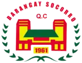The seal of Barangay Socorro features the twin pre-war water tanks, the flag of the Philippines, and the year when Socorro was established. It is used to authenticate certain documents issued by the barangay government, such as barangay clearance.