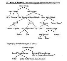 The Soddo Gurage language, also known traditionally and locally as Kistanigna, is one of the Gurage languages from the Northern group, which is classified as one of the clusters of South Ethio-Semitic. Within the South Ethio-Semitic, it is branched under the Gunnangn Branch of Gurage languages. It is not mutually intelligible with any of the West Gurage or East Gurage languages (i.e. Sebat Bet). Kistanigna is generally considered closest to Amharic than the other Gurage languages. It shares a 76%/90% mutualistic comprehensibility with the closely related Dobi, as well as sharing considerable affinity with the Meskane language. It is also closely related to the now-extinct Gafat language, which was spoken in present-day Welega and Gojjam.