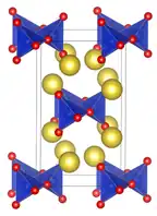 it is structurally analogous to sodium metasilicate, Na2SiO3, consisting of polymeric GeO32− anions made up of vertex sharing {GeO4} tetrahedra.[1][2]