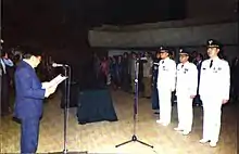 At the special session of the Bogor Regional People's Representative Council, which was held to elect the regent for the next term, Nataatmadja instructed observers to wear traditional Sundanese clothing. Although he managed to be reelected, his instructions to wear traditional Sundanese clothing infuriated the Minister of Internal Affairs at that time, Rudini, who considered Nataatmadja to be violating the rules.[1] This incident culminated in Rudini refusing to recognize the reelection of Nataatmadja.[14] The council soon picked other candidates and a second election was held.[14] Eddie Yoso Martadipura, an MP from the Armed Forces Faction, won the second election and was inaugurated on 4 October 1988.[15]