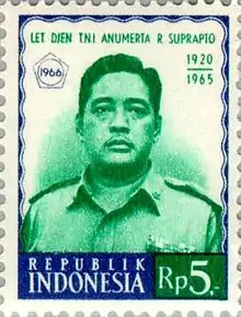 Lieutenant General R. Soeprapto (20 June 1920 1 October 1965) was the Second Deputy Commander of the Indonesian Army, and was kidnapped from his home in Jakarta by members of the 30 September Movement in the early hours of 1 October. He was later killed at Lubang Buaya.