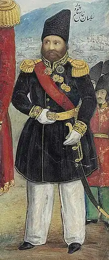 ![]() Illustration of Solayman Khan Saham al-Dowleh by Sani ol-Mulk | |