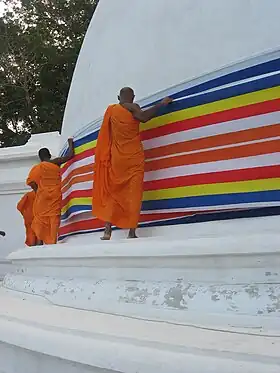 Buddhist bhikkus decorating the Somawathiya Chaitya