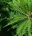 Tall shrub up to 2 m. Leaves pinnatisect with 10-15 pairs of equally spaced lobes, the lobes 6–40 mm wide. Inflorescence very large and dense, compound-corymbose. Individual heads with 30-50 yellow ray florets but no disc florets.