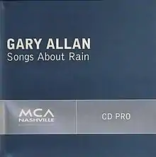 "Songs About Rain" is a song written by Pat McLaughlin and Liz Rose and recorded by American country music artist Gary Allan. It was released in November 2003 as the second single from Allan's 2003 album See If I Care. The song peaked at number 12 on the U.S. Billboard Hot Country Singles & Tracks chart and at number 71 on the U.S. Billboard Hot 100 chart.