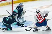 Milano (right) during a game against the Seattle Kraken in 2022.