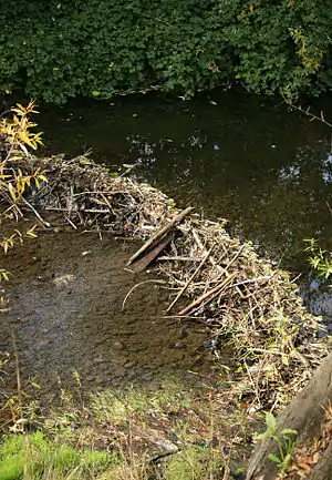 Beaver dam on Sonoma Creek at Maxwell Farms Regional Park in Sonoma, California, 2009