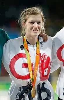 Sophie Megan Hahn, MBE (born 23 January 1997) is a parasport athlete from England competing mainly in T38 sprint events.[2] In 2013, she qualified for the 2013 IPC Athletics World Championships, selected for the T38 100m and 200m. She took the gold in the 100m sprint, setting a new world record.