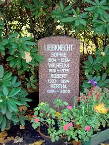 Her funeral in 1964 was attended by Robert and Wilhelm, Sophie Liebknecht's stepsons from Karl's first marriage.[2] The Soviet government arranged a public ceremony and an honor guard.[2]