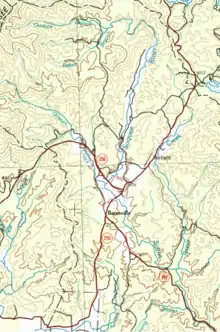 Topographic map showing the headwaters of the Soque River and Raper Creek