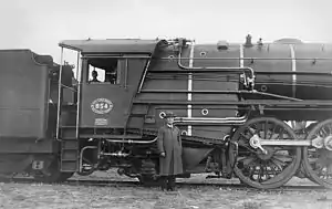 They proved to be very successful, efficient and economical in service when handling loads within their capacity. When the original wooden-bodied coaches of the Union trains were replaced with heavier steel-bodied air-conditioned coaches in 1939, however, the load increased to 600 long tons (610 tonnes) or more and the Class 16E was considered to be inadequate to the task and relocated to Bloemfontein in the Orange Free State.[1][2][3]