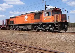 The Class 34-200 type GT26MC diesel-electric locomotive was designed and built for the South African Railways (SAR) by General Motors Electro-Motive Division (GM-EMD) at their McCook plant in Illinois. Fifty locomotives were delivered between October 1971 and March 1972, numbered in the range from 34-201 to 34-250.[1][2][3][4]