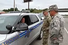 The South Carolina Highway Patrol is the highway patrol agency for South Carolina, which has jurisdiction anywhere in the state except for federal or military installations. The Highway Patrol was created in 1930 and is an organization with a rank structure similar to the armed forces.[4] The mission of the South Carolina Highway Patrol includes enforcing the rules and regulations in order to ensure road way safety and reducing crime as outlined by South Carolina law. The Highway Patrol is the largest division of the South Carolina Department of Public Safety and its headquarters is located in Blythewood. This department also includes the South Carolina State Transport Police Division, and the South Carolina Bureau of Protective Services.