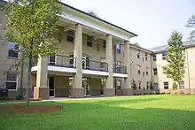 One of the two older dorm facilities on campus is used to house overflow from Tiger Village I and II.