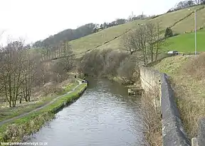 When the river levels are normal, travelling along the canal is a pleasant experience, as the route passes through areas of beautiful countryside and other areas with interesting industrial archaeology. After 8.5 miles (13.7 km) and 14 locks, the channel forks. The Calder and Hebble proceeds straight ahead through Cooper Bridge flood gates to reach the Aire and Calder at Wakefield. That route is part of the North Pennine Ring, which uses the Leeds and Liverpool Canal to re-cross the Pennines. The South Pennine Ring takes a left turn onto the Huddersfield Broad Canal. Care is needed as there is a large weir beside the entrance to the first lock.[6][7]