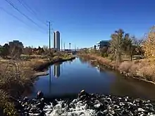 From the confluence, the river flows towards Denver and enters Strontia Springs Reservoir.
