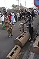 The Beti-Pahuin Bantu groups entered the area in the 19th century from the northeast, south of the Sanaga River. They were under pressure from the migrating Vute, Mbum, Babouti, and Gbaya, who were themselves fleeing the Fulbe (Fula). The Beti-Pahuin were more militarily advanced than the natives they encountered, and they easily subdued and assimilated these peoples or else pushed them away, as with the Ngumba and Mabea, descendants of the Maka and Njem, who had traveled southwest toward the coast when the Beti-Pahuin had first encountered them a century earlier north of the Lom River. The Beti-Pahuin may have practiced cannibalism at this time, as well.