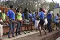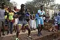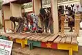 Lobé, only a few kilometres south of Kribi, is another popular spot with tourists due to its even more isolated beaches and the picturesque Lobé Falls (chutes de Lobé), found where the Lobé River empties into the Atlantic. Local artists and vendors frequent the area around the falls, as do drivers offering to take passengers to Kribi or 65 km further south to see the Lala Pygmy village Elogbatindi, .