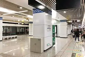 The station has 2 island platforms, but only two platforms are currently in use, and the other two platforms are currently not in use. However, they will be put into service when Line 1 and Line 2 are separated in the future, serving Line 1 instead. On the other hand, the platforms currently in use will serve Line 2 only. Then, a same-direction cross-platform interchange will be provided between the two lines.