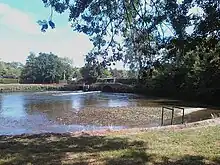 It has been suggested that the ponds are relics of the "2 fisheries" mentioned in the Domesday Book entry for the site.[46] The gardens and salmon pool were the subject of an oil painting by the neo-classical painter Adam Buck; the painting, measuring 35 inches by 57 inches, sold at auction at Sotheby's in London for £3,200 on 27 November 1974.[47] Some of Capability Brown's signature cedars of Lebanon still surround the house today.