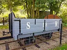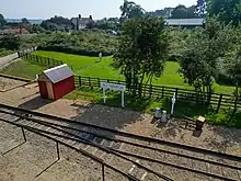 The route closely followed the River Blyth, with Halesworth and Southwold both on the north side, but the longest section, including the intermediate stations, was on the south side. Although the line closed in 1929, its track was still marked and identified on a 1933 Ordnance Survey map.[1] The line was lifted and the equipment was scrapped in 1941 to help with war efforts. Some track can still be found on the harbour branch and a surviving van is at the East Anglia Transport Museum. The Coal Shed has now been restored and a short section of track has been laid next to a recreated platform along with two sidings. Replica rolling stock & a battery electric 3ft gauge locomotive 'Greenbat' are occasionally operated on open days.