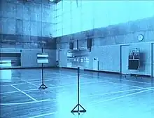 Spacy (スペイシー) is a 1981 Japanese experimental short film directed by Takashi Ito.[1] The film consists of 700 continuous 16 mm still photographs of a gymnasium;[1] using a stop motion technique, the camera appears to move throughout the space and into photographs of the gymnasium itself that are displayed across multiple easels, creating a seemingly endless, recursive visual effect.[2][3]
