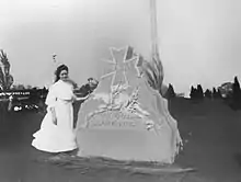 Miss Klotho McGee stands next to the memorial after its unveiling in May 1905.