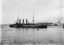 Camara's squadron—consisting of Emperador Carlos V, battleship Pelayo, auxiliary cruisers Patiota and Rapido, destroyers Audaz, Osado, and Prosepina, and transports Buenos Aires and Panay – sortied from Cadiz on 16 June 1898, passing Gibraltar on 17 June 1898.[6] It arrived at Port Said, Egypt, on 26 June 1898, and requested permission to transship coal, which the Egyptian government finally denied on 30 June 1898 out of concern for Egyptian neutrality.[7] By the time Camara's squadron arrived at Suez on 5 July 1898,[8] the squadron of Vice Admiral Pascual Cervera y Topete had been annihilated in the Battle of Santiago de Cuba, freeing up the U.S. Navy's heavy forces from the blockade of Santiago de Cuba. Fearful of the security of the Spanish coast, the Spanish Ministry of Marine recalled Camara's squadron on 7 July 1898,[9] and Emperador Carlos V returned to Spain, where Camara's 2nd Squadron was dissolved on 25 July 1898.[3] Emperador Carlos V spent the last month of the war in Spanish waters, and thus missed combat.