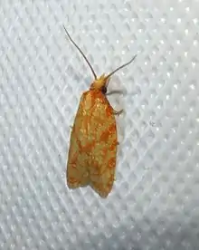 The sparganothis fruitworm moth or blueberry leafroller (Sparganothis sulfureana) is a species of moth of the family Tortricidae. It is found in most of eastern North America[3] and on Cuba.