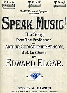 Speak, Music! is a song written by the English composer Edward Elgar in 1901 as his Op.41, No.2.