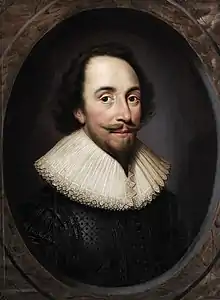 Northampton was the son of William Compton, 1st Earl of Northampton, and his wife Elizabeth, daughter and heir of Sir John Spencer, Lord Mayor of London.[1] He was created a Knight of the Bath on 3 November 1616. In 1621 he was elected Member of Parliament for Ludlow. Also in 1621, he was appointed Master of the Robes to the Prince of Wales and attended the latter in the adventure to Spain in 1623. He warmly supported the king in the Scottish expeditions, at the same time giving his advice for the summoning of the parliament, which "word of four syllables" he declared was "like the dew of heaven".[2] In 1626, he became Baron Compton by writ of acceleration. In 1630 he inherited the Earldom on the death of his father in 1630 and assumed his duties as Lord Lieutenant of Gloucestershire and Lord Lieutenant of Warwickshire.