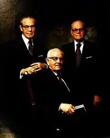 Kimball with counselors N. Eldon Tanner (left) and Marion G. Romney (right).