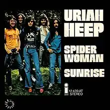"Spider Woman" is a song by the British rock band Uriah Heep, released on their fifth studio album The Magician's Birthday in 1972. The song was written by David Byron, Mick Box, Gary Thain and Lee Kerslake. "Spider Woman" was released as the lead single from the album in Europe, reaching number 14 in the German charts for twelve weeks.[2] The B-side of the single is "Sunrise", except for Japan, where it was the A-side. The song was recorded in Lansdowne Studios, London, in September 1972.[3]
