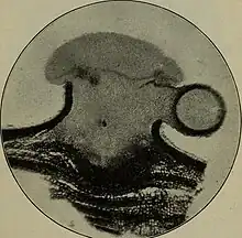 A sporodochium (pl. sporodochia[1])[2] is a small, compact stroma (mass of hyphae) usually formed on host plants parasitised by mitosporic fungi of the form order Tuberculariales (subdivision Deuteromycota, class Hyphomycetes). This stroma bears the conidiophores on which the asexual spores or conidia are formed.