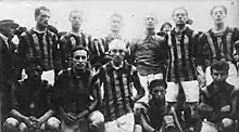 General San Martín participated in the 1925 edition of Copa Jockey Club, where it lost to Temperley in quarter finals.[9] After the 1926 season, dissident Asociación Amateurs de Football merget to AFA. That restructuring caused 11 teams were relegated, with San Martín among them. In 1934 the team returned to Primera to play in the official league (AFA) that remained amateur after the main clubs established professional Liga Argentina de Football in 1931.[10][11][12] That was the last season of San Martín in Primera after both leagues, AFA and LAF, merged in 1935. That same year the club disaffiliated and never returned to official competitions.[5]