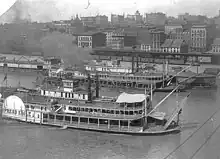 The Spread Eagle was a steam-driven sidewheel riverboat that transported passengers, goods and supplies to the forts and trading posts along the Missouri River between 1857–1864. It was constructed and launched at Brownsville, Pennsylvania. The vessel was a wooden hull packet, 210 feet (64 m) long, with a beam of 36 feet (11 m), a draft of 6 feet (1.8 m), and was rated at 389 tons.[1] It was powered by two steam engines with 3 boilers each, at 40 inches (1,000 mm) in diameter and 24 feet (7.3 m) in length. The Spread Eagle was constructed by Captain Benjamin Johnson who sold the vessel to the American Fur Company upon her arrival at Saint Louis, Missouri. Commanded by captain Bailey, she was once engaged in a race along the Missouri from St. Louis to Fort Benton where she rammed her opponent.[2][3]