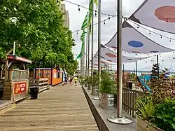 The Spruce Street Harbor Park is an urban park at Penn's Landing in Philadelphia, Pennsylvania. Open during the summer, the place features a boardwalk along the Delaware River with a beachfront atmosphere.[1] Fireworks were planned around the Independence Day holiday, though the main fireworks were scheduled for the Benjamin Franklin Parkway on July 4 itself.[2]